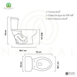 Sanitario ahorrador de agua Royalty, 4.8 lts. por descarga.